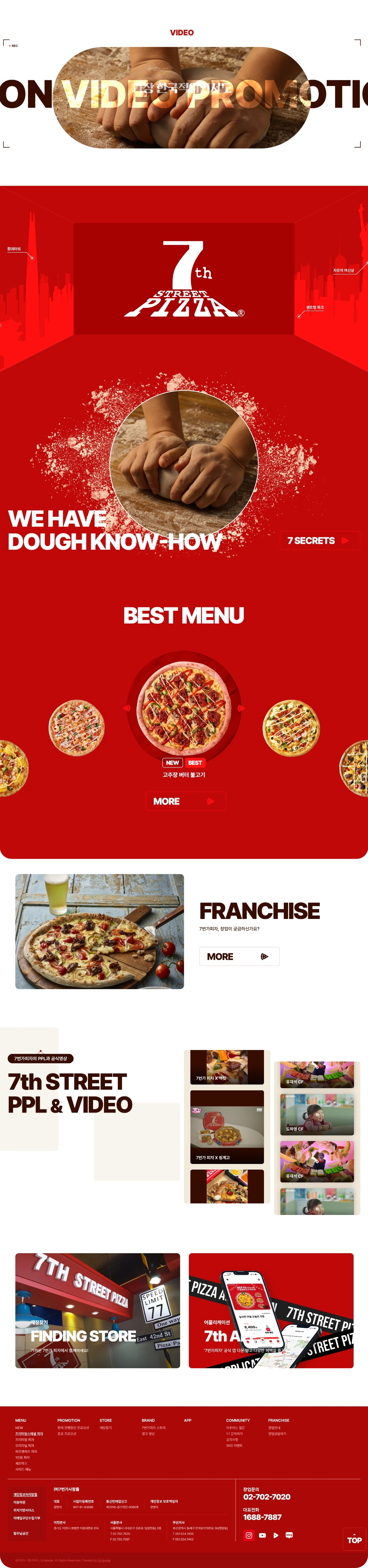 “도우가 맛있어야 진짜다! 도우부터 다르게 맛있게! 7번가피자!”