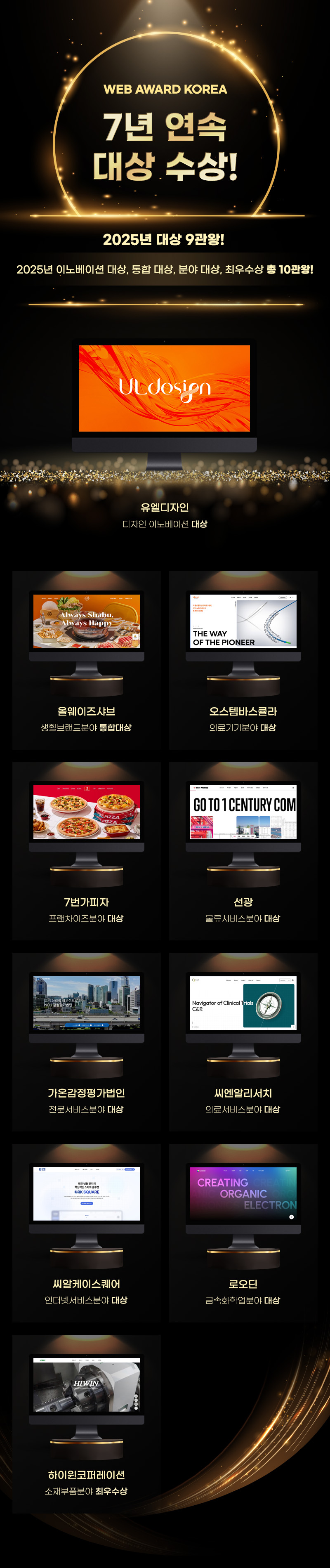 저희 유엘디자인이 2025 웹어워드코리아에서 이노베이션 대상 포함